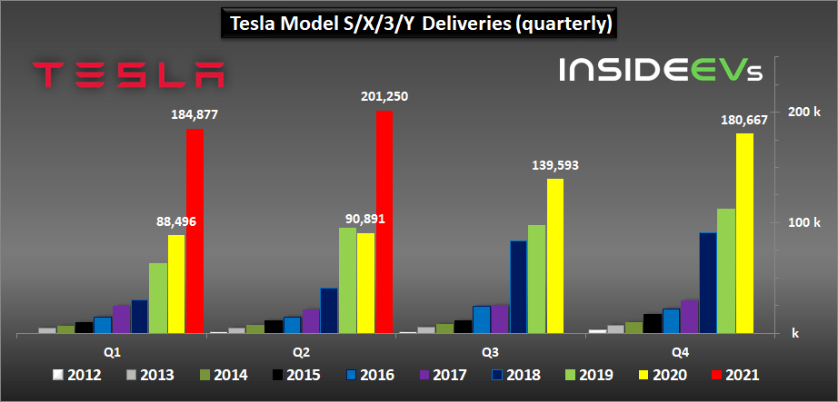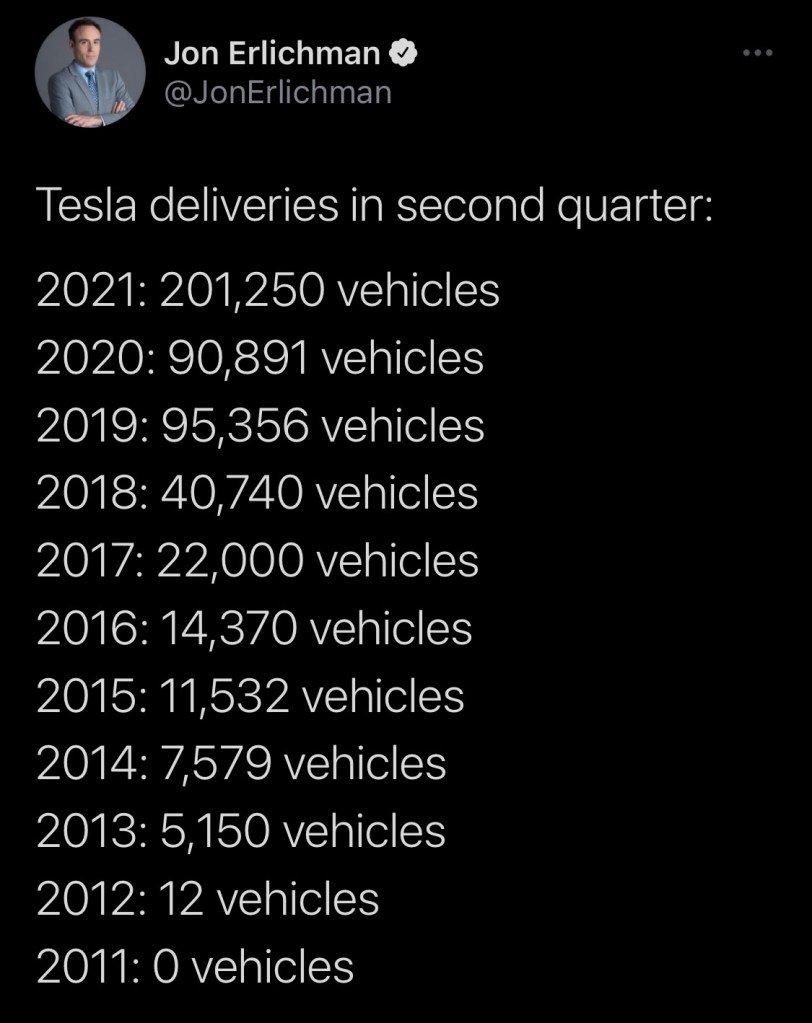 Tesla stock has been flat over the past 6 months; hovering around $650 a share at the time of writing; although their automotive sales have been anything but flat. For the 2Q of 2021 Tesla produced a record 206,421 vehicles and delivered a record 201,250 vehicles. Deliveries are up 121% from last years delivery numbers of 90,891 vehicles. These numbers are very clearly still showing how much of a growth company Tesla is; despite the FUD in the main stream media regarding the company.